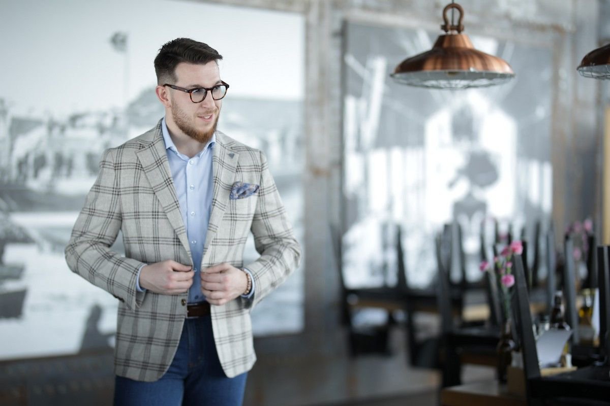 Rolą doradcy w salonie jest pomoc w wyborze odpowiedniej tkaniny, mając na uwadze przeznaczenie marynarki. Jeśli ma ona stanowić element letnich stylizacji, to najprawdopodobniej warto zwrócić uwagę na len lub wełnę w splocie fresco, jeśli jesiennej, to z chęcią zaproponujemy marynarkę tweedową, flanelową lub z wełny z kaszmirem.